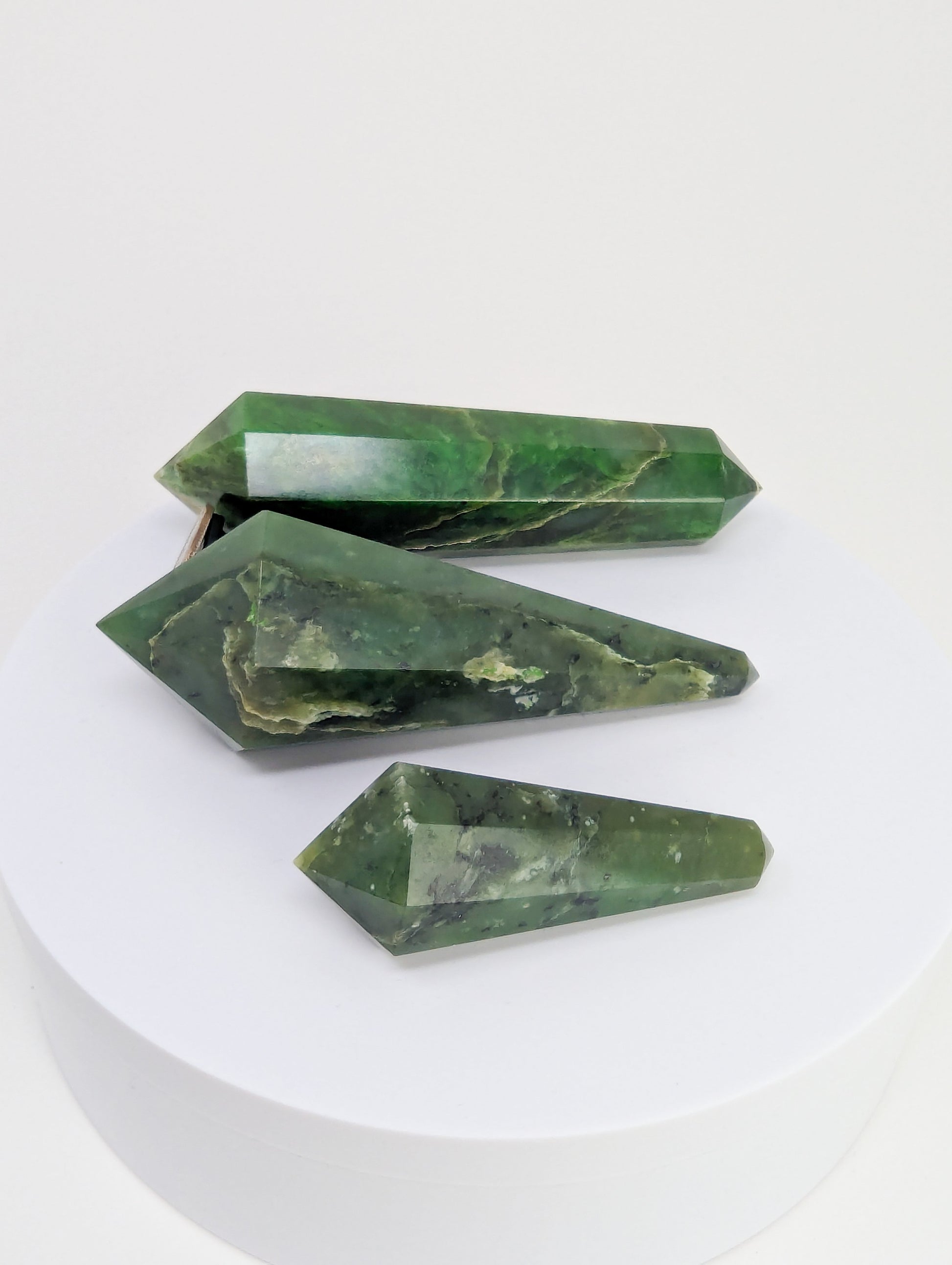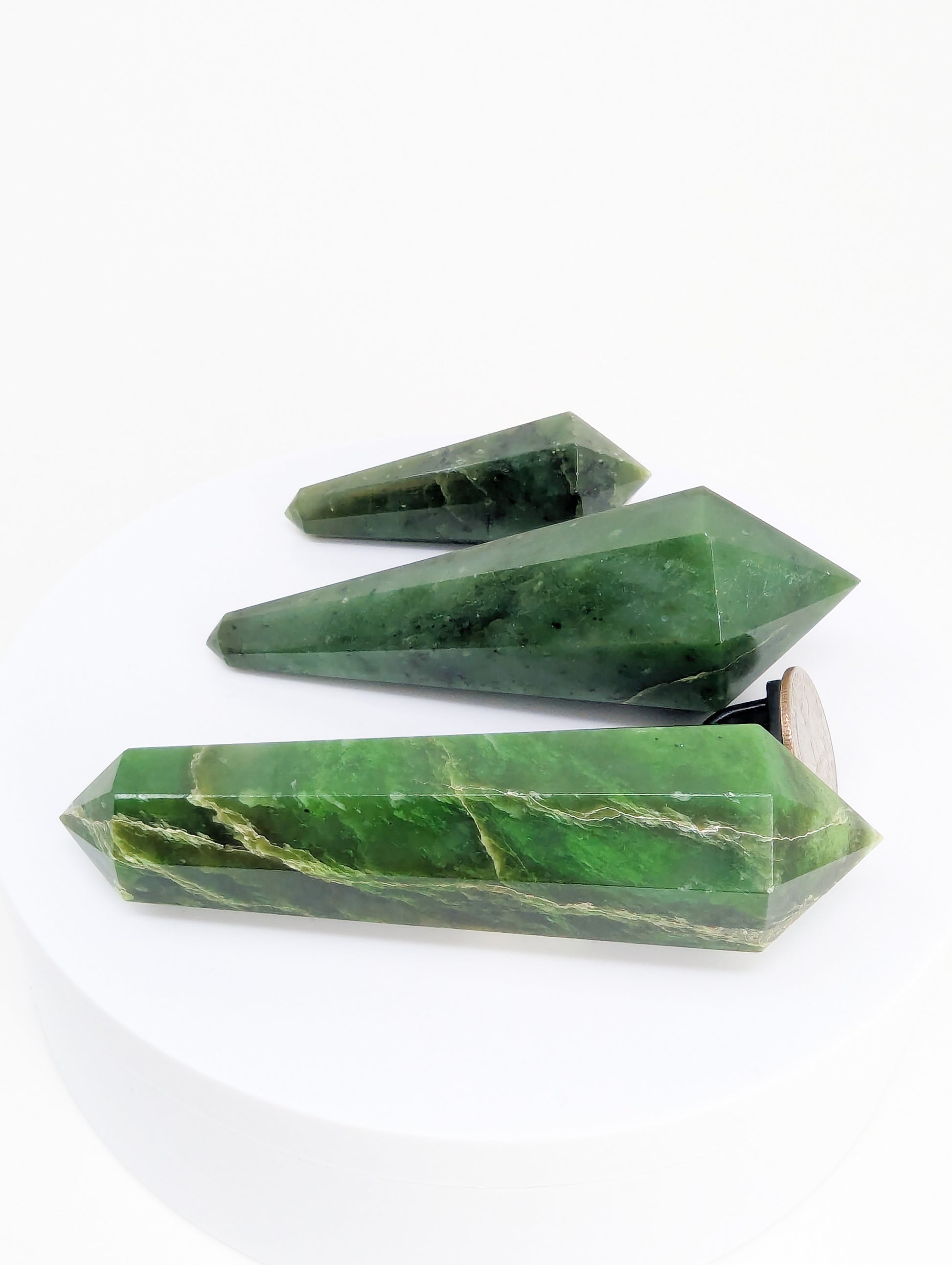 BC, CanadaWe wanted to create something truly special with BC jade—something you don’t regularly see on the market. That’s how these large nephrite jade Vogels came to be. Each piece is carved from British Columbia jade, known for its toughness and deep, saturated green, then shaped into precision-cut Vogel wands that feel as powerful as they look.